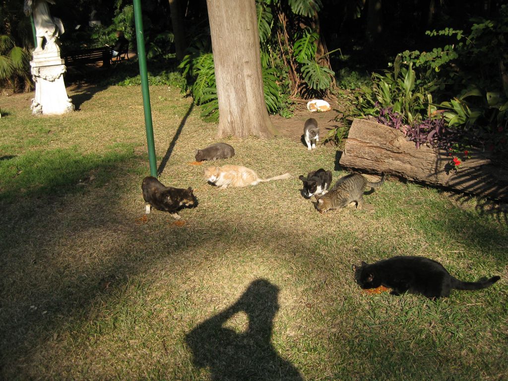 We left small piles of dry food for the cats to munch on after we left.