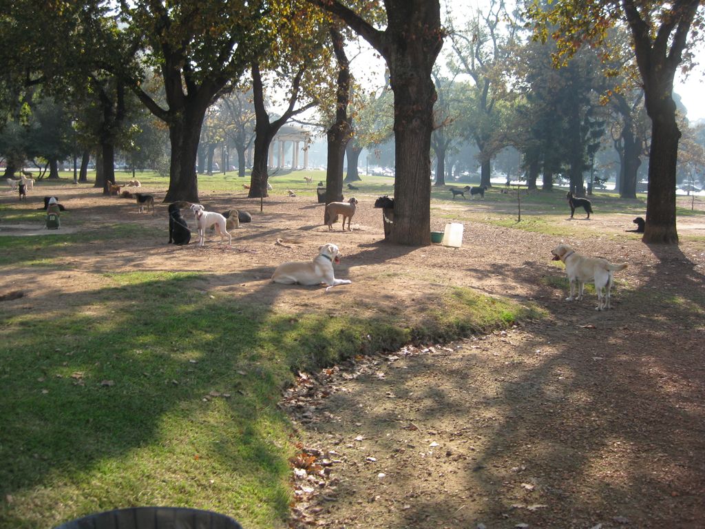 Many of the city's dog-walkers come to this park to tether their dogs during the workday.