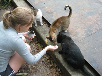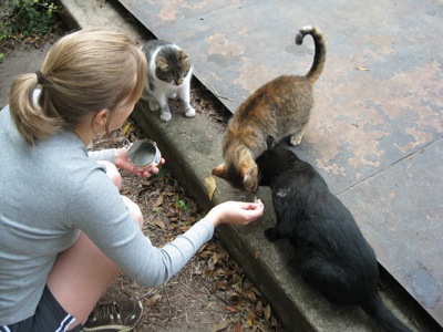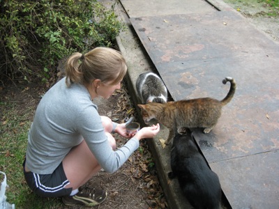 Amanda made sure to feed the smaller cats that were too small to muscle their way to the front of the line.