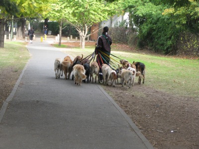 Dog-walking is a big business in BsAs. One guy will walk more than a dozen dogs, each with a different owner.