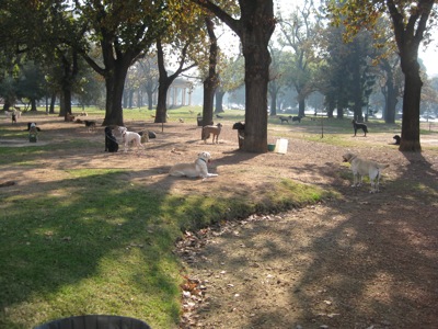 Many of the city's dog-walkers come to this park to tether their dogs during the workday.