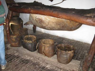 This is a complete ox skin. Wine ran out the tail to the buckets below.