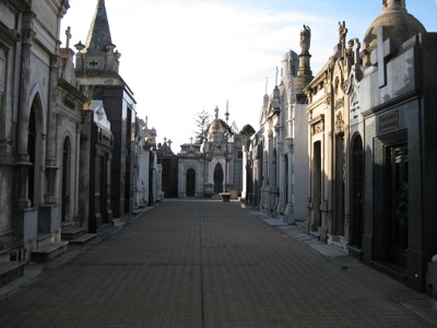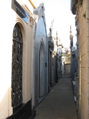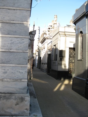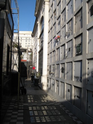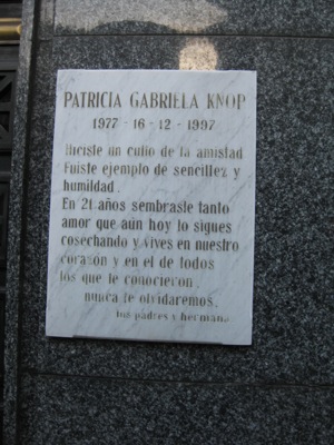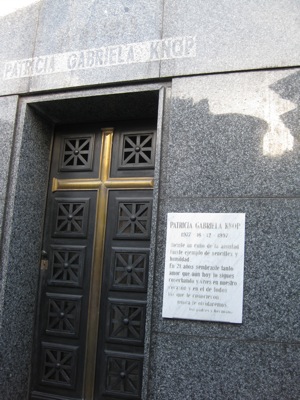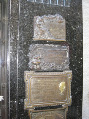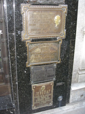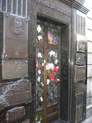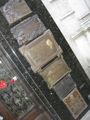 All but one of these plaques is for Eva Peron; the others (to the left of the door) are for other family members.