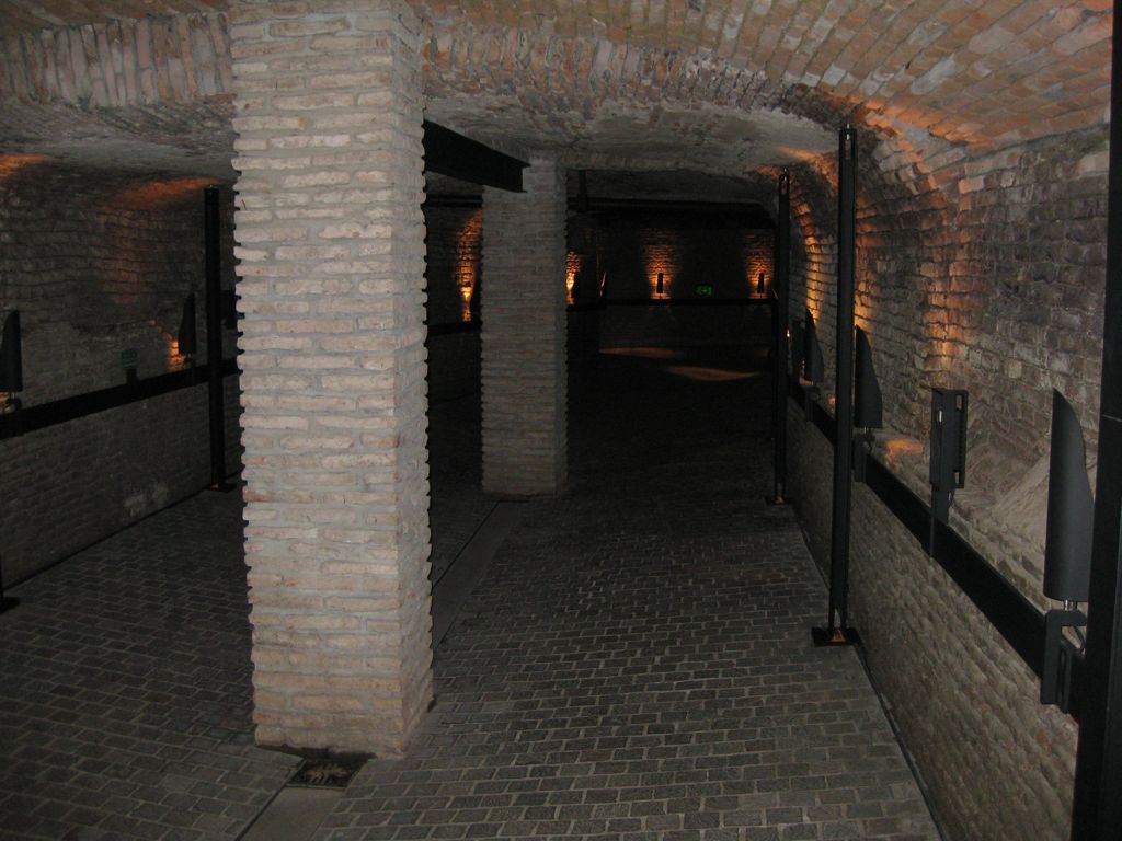The buildings in this area were built atop a stream, which was enclosed in these tunnels (originally with dirt floors). At some point they were blocked up with garbage as a new sewer system removed the need for water to flow this way.